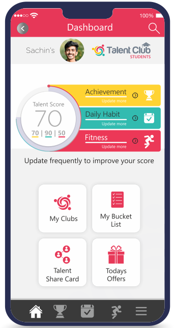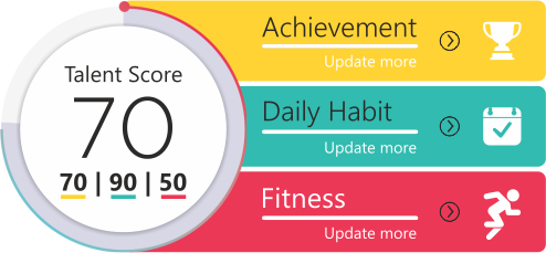 Once you are a member of Talent Club, you will get a Talent Score which captures your academic and nonacademic achievements to create a measurable index. You will also be able to track your daily habits and physical fitness.